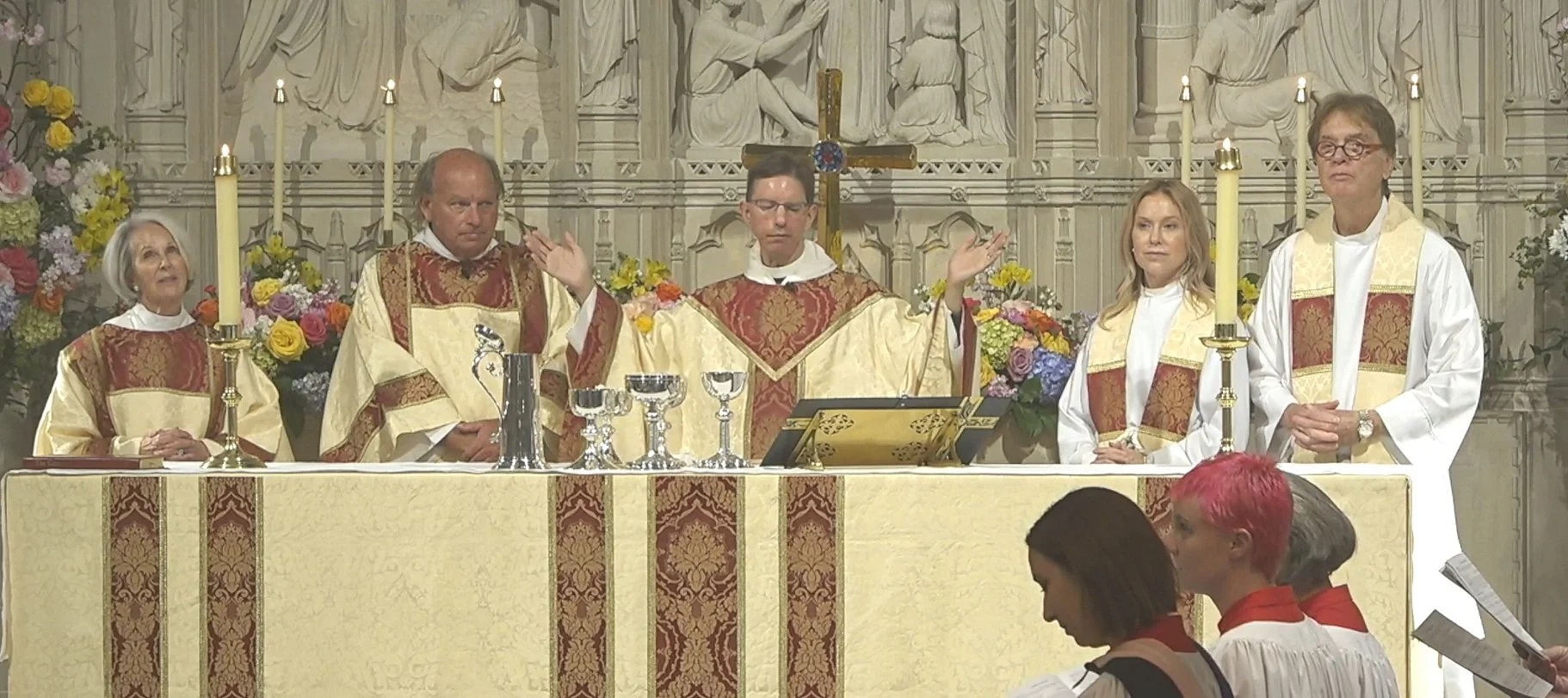 Rev. Dr. Cecily Titcomb, Rev. Clayton Wadell, Rev. Tim Schenck, Rev. Susan Beebe, and Rev. Jeff Beebe preside over Holy Communion - 11:00 a.m. Easter Day Service, 2024