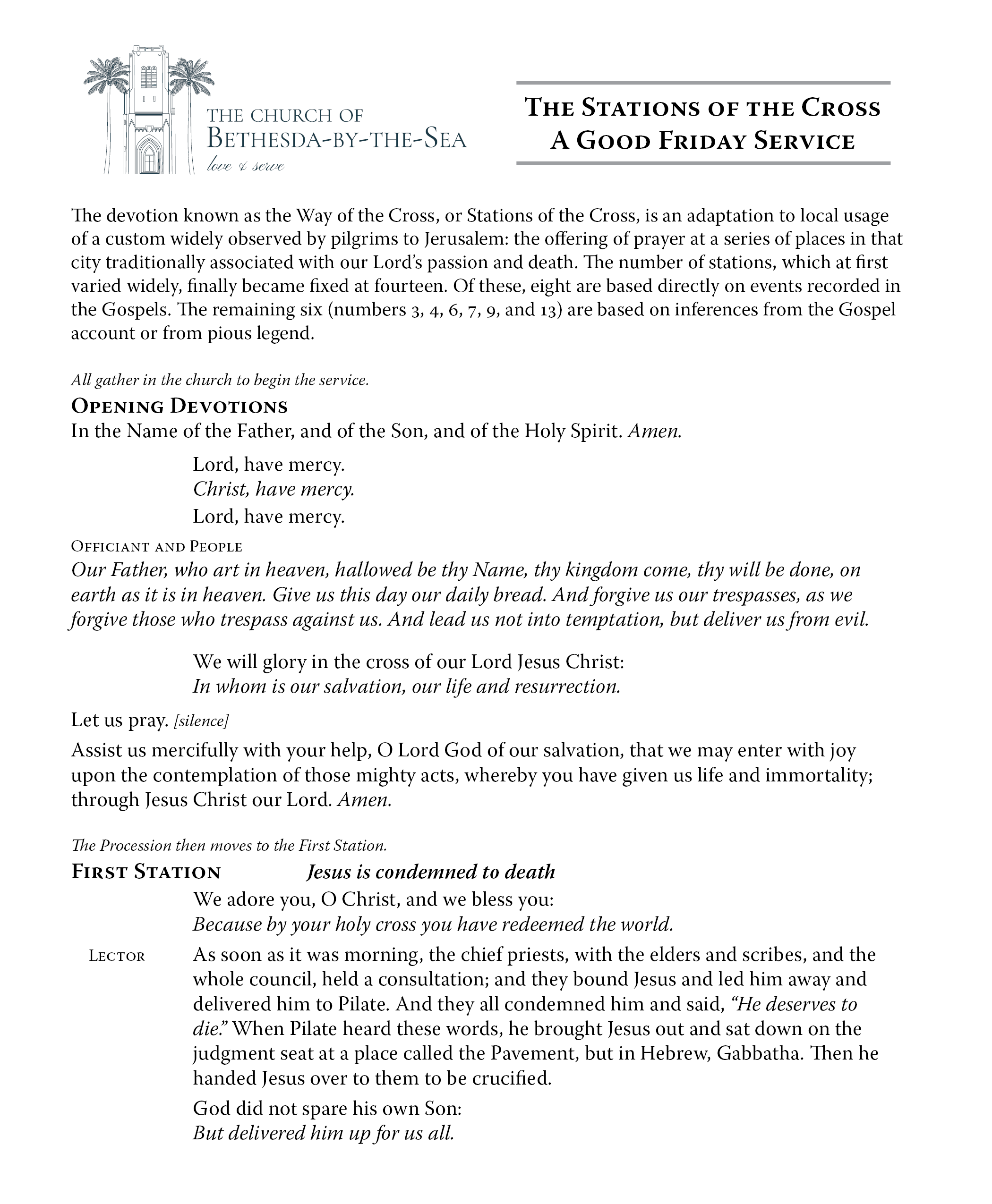 Holy Week Leaflets Easter 6:15 a.m. Easter 7:30 a.m. Easter 9 & 11 a.m. Easter Vigil Holy Saturday 10 a.m. Good Friday 8:00 a.m. Good Friday Noon Stations of the Cross Maundy Thursday